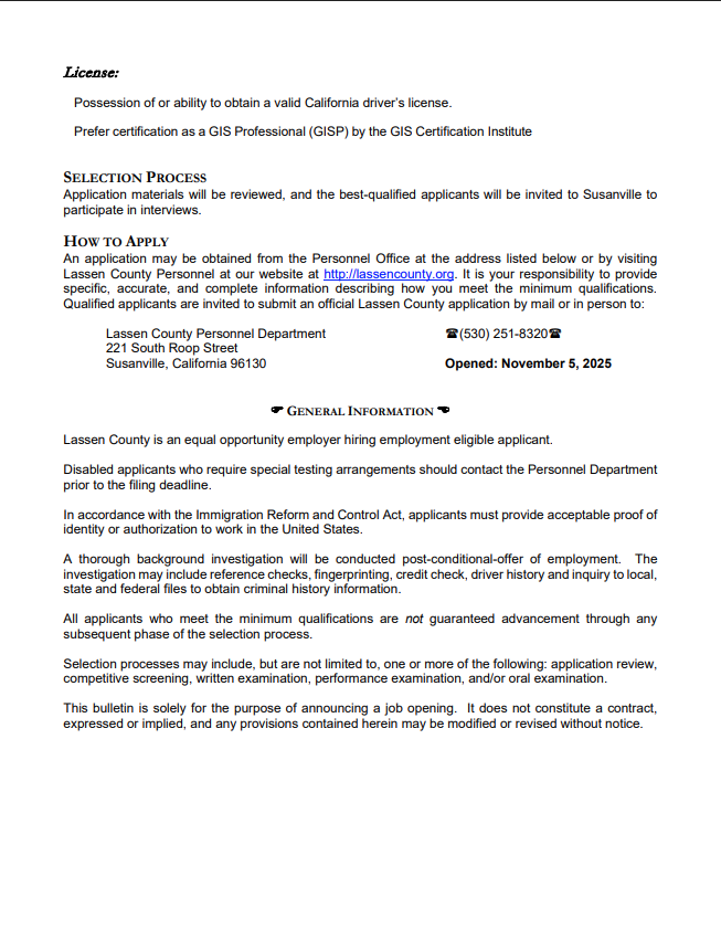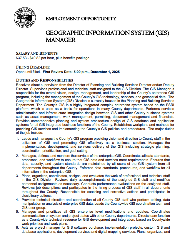 New job posting: GIS Manager – Lassen County